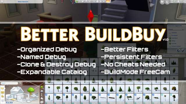 Better BuildBuy is one of those essential mods most Simmers recommend upon being asked, “What mods should I download?” This simple quality-of-life mod doesn’t change your Sims 4 experience in any negative way; it only makes navigating around the build and buy mode menus easier. You can access every item, including those you normally can’t purchase, filter searches for a more organized shopping experience, pin your favorite objects, and more. Some of our most beloved Better BuildBuy feature highlights include the ability to edit lighting while building, the ability to view and efficiently organize debug or previously hidden environment items, and the ability to quickly locate objects by visual elements such as color or those from specific paid content like kits.