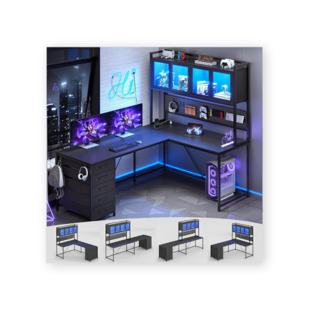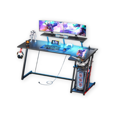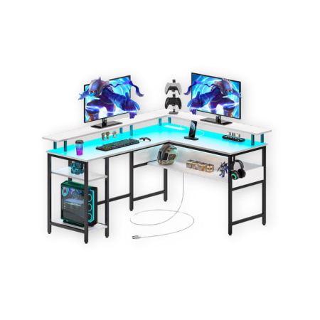 The AODK L-Shaped Desk Gaming Desk is a premium multitasking beast, because basic just doesn’t cut it anymore for the hardcore. Its reversible design lets you customize the setup, making it ideal for corner spaces and oddly shaped rooms. It’s loaded with convenient features like 3 power outlets, 2 USB ports, and a 6.5ft power cord to keep your gear charged. And yes, it’s got RGB—a colorful LED strip with 10 colors, 8 brightness levels, and 10 modes with memory function to set the perfect mood.
