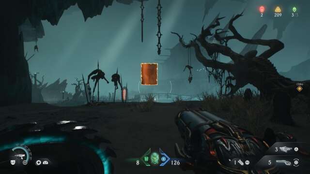 Harbor of Souls, Doom: The Dark Ages‘ 19th level, contains three collectibles. Collectibles take the form of codex entries, toys, and weapon skins, hidden though out most levels in the game. Doom: The Dark Ages has a built in tracker on the map screen, which lists the total number and checks them off as you collect them.