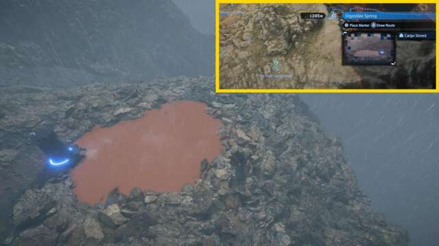 • Location: Animal Shelter – Keep going north past the Animal Shelter until you’re at the cliffside area. There, you should find the perfect spot for this Death Stranding 2 Hot Spring.