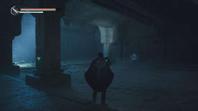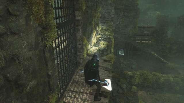 - Chest/door location: From the APC’s initial spot, keep heading to the left until you see the fortress ruins in the distance. Cross the stone path by the river and enter the cave. There’s a Vault of Forbidden Knowledge down below, as well as a means of getting to the interior of the ruins. Go up the steps and traverse the wall to reach the chest.