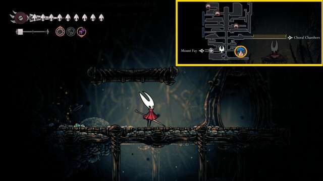 • Upon reaching the Cradle, bind the severed arm of Grandmother Silk to receive the Pale Nails skill. This should be the last silk skill/ability in the game. There’s also a narrow opening along the right-hand side, so just use Silksoar to super jump to the top.