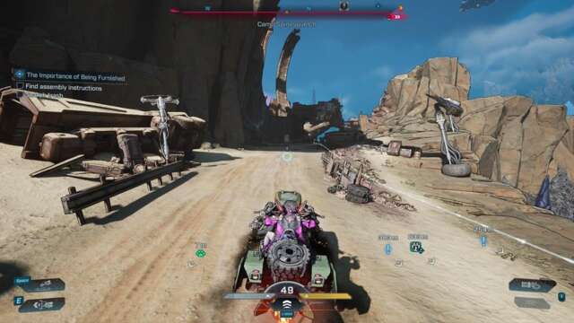 • Location: You can reach this structure swiftly by driving your vehicle from Carcadia Faction Town all the way to the settlement ruins on the hilltop. Then, go north and do a boosted jump with your vehicle or just glide across the gap.