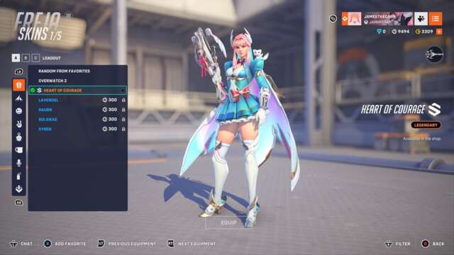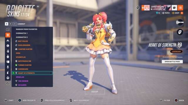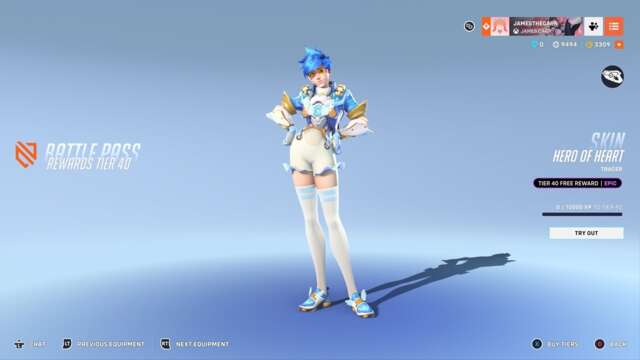 An additional two skins are available in the battle pass: the Heart of Strength Brigitte skin at tier 20 in the premium pass and Hero of Heart Tracer at tier 40 for free. The Juno Heart of Hope Mythic skin is in the Mythic shop, with a base cost of 50 Prisms, with additional tiers of customization available for more Mythic Prisms, which can be earned via the battle pass or purchased for real money.