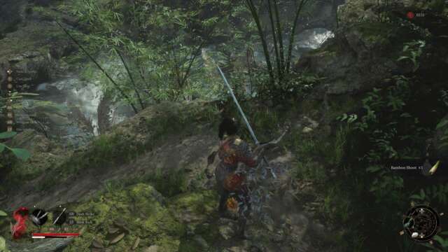Location: Shaft Entrance – From the fast travel point, you should see a tunnel with pendulum traps. Look for a ledge off to the side and drop down. Follow it as it loops around the lower section of this level. Eventually, you’ll stumble upon this Bamboo Shoot. Note that you can find a Wu Gang item and a Manna Vase upgrade nearby.