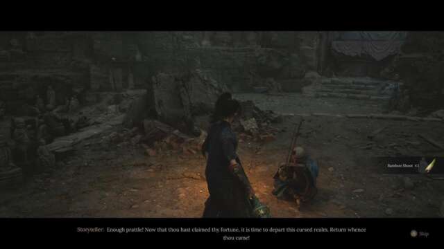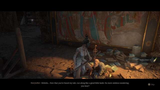 - Instead, talk to the Storyteller first. You should see him at the right-hand side. He’ll give you another Bamboo Shoot.