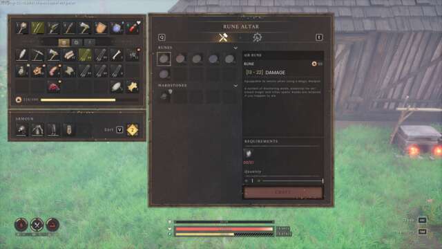 Under the “Crafting” tab, you can see the recipe for the Rune Altar, which requires the following resources to build: