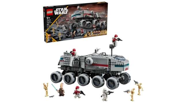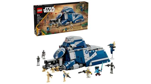 This massive playset includes 12 minifigures, plus a giant, interactive MTT vehicle. Its side panels fold for easy access, a knob can be turned to activate an interior rack filled with droids, and wheels hidden beneath its panels make it easy to maneuver around your makeshift battlefield. Minifigures include six Battle Droids, Commander Bly, Aayla Secura, three Commando Droids, and a Pilot Battle Droid.