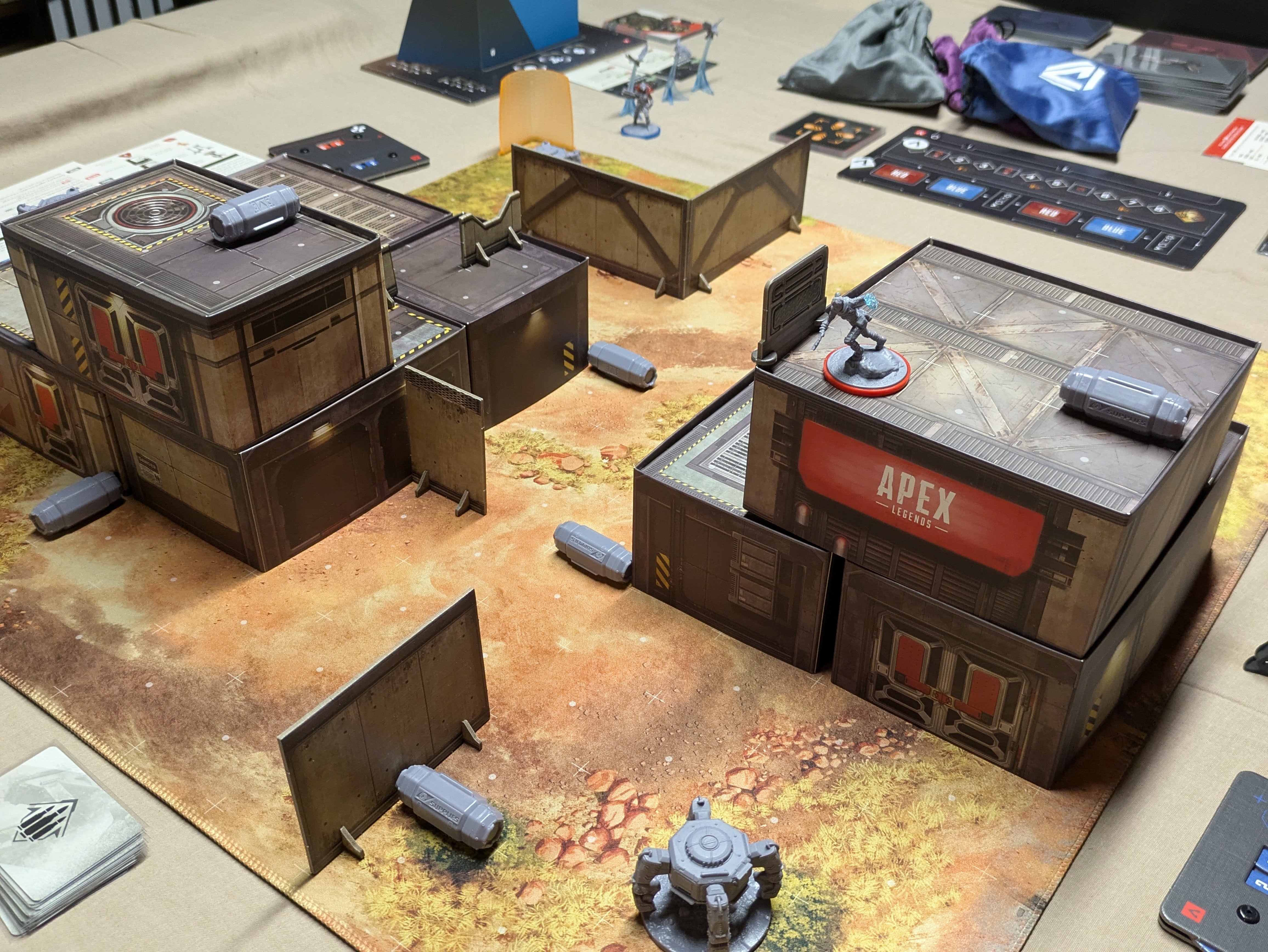 Beyond this wonderful feat, Apex Legends: The Board Game offers several other killer features. Characters are expertly modeled. They have asymmetric tactical abilities and ultimates that affect the battlefield in various ways. You can pop smoke, call in airstrikes, and deploy drones. Each character is also paired with a unique deck of cards that can be played to tweak actions and react to opponents’ maneuvers. This creates a nifty fog of war, although again, at the cost of possibly slowing down the pace of play.