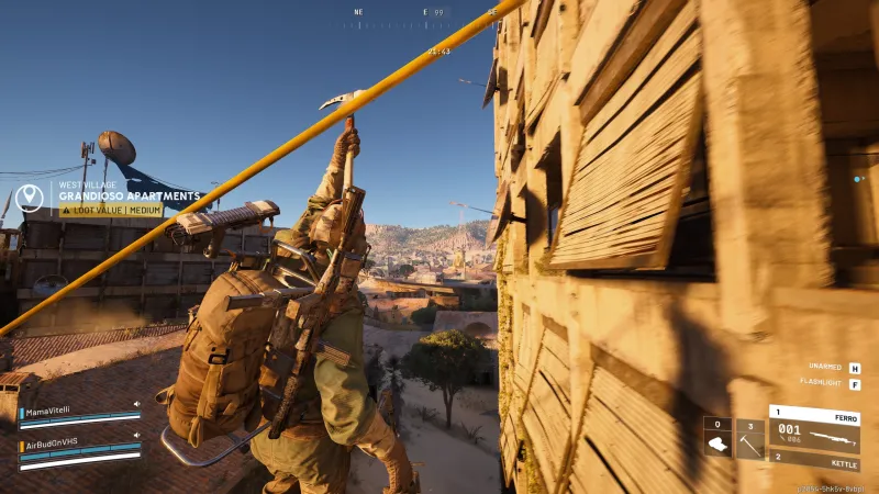 Before loading into their selected map, players equip themselves with various old-world weaponry, like marksman rifles and pistols, alongside a selection of futuristic gadgetry like shields, loadout augments (i.e., expanded backpack space vs. more quick-use slots), ziplines, special grenade types, and a lot more. You can always enter the game world with a free, randomized loadout if you’ve lost ample gear due to repeated deaths. While the free kit is basic, it’s a viable arsenal for most resource-gathering outings, and my friends and I have wiped unsuspecting enemy raiders with much better loadouts. I love outplaying a better-equipped squad with a thoughtful strategy, like using a Lure Grenade to attract a swarm of enemies to their position, and narrowly escaping via the contested exit with my hard-earned spoils.