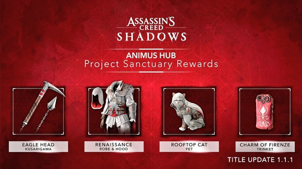 Today, Ubisoft is updating Assassin’s Creed Shadows to version 1.1.1, which not only addresses multiple bugs, but adds a mission that sets up the Claws of Awaji expansion launching on September 16. However, a new addition to the Animus Hub, called Sanctuary, is offering players something they may not have known they wanted: a cat companion dressed as iconic Assassin’s Creed hero Ezio Auditore da Firenze.