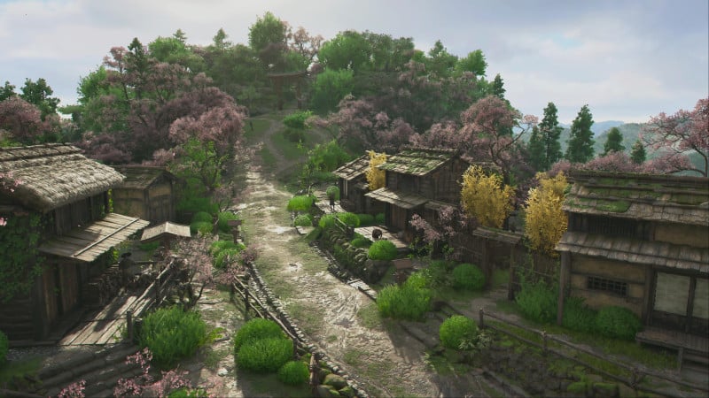 Outside of combat, Shadows is a feast for the senses. Capturing the temperamental weather of Japan, changing seasons bring about new scenery every couple of hours. Naoe struggles to run in the deep snow of Winter, while the rising sun blinds the landscape in the Summer. Autumnal forests come alive with bright oranges as the wind breathes through the leaves, and naturally, Spring brings about gorgeous Sakura that blankets the paths of towns and villages. Crickets and frogs pierce through the serenity of a lakeside coast while falling leaves and windy storms accompany the most beautiful scenery in any AC game ever. On PlayStation 5 Pro, I was constantly stunned by how great everything looked, especially the light peering through towering trees everywhere I went.