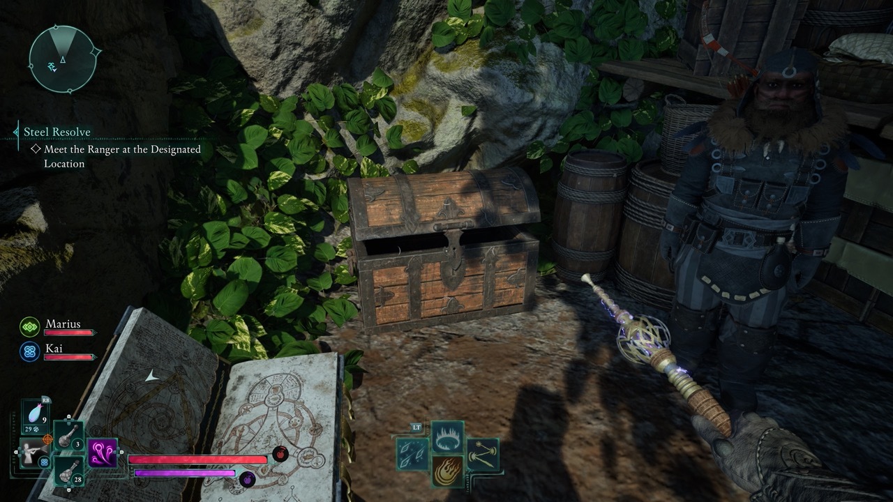 The treasure can be found on a cliff overhanging the river southeast of The Wildwoods. If you start at the Wildwoods Outskirts Party Camp, head south toward the river. Near the waterfall there is a small stretch of a wood fence, just beneath that down the cliff there is a small camp set up with an easel. In the chest there you can find the unique treasure called Painter’s Brush. The camp itself is overlooking the waterfall and is north of the Rootbound Godless Ruins.