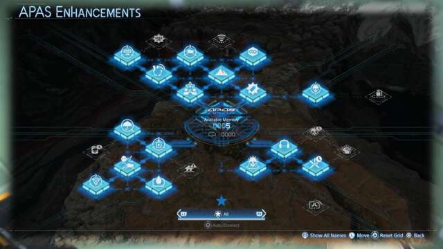 • You can freely reset or reselect skills via the APAS Enhancement menu. This allows you to fine-tune your build based on your playstyle. However, you can only make changes while you’re in a region that’s already connected to the Chiral Network–i.e. the settlement’s leader has asked you to connect their site using the Q-pid.