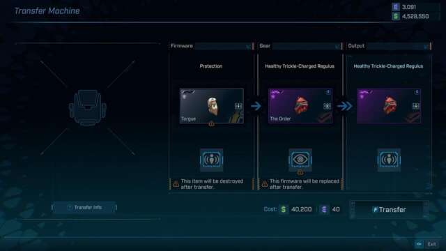 - You can transfer Firmware via devices known as Transfer Machines. These are found in Faction Towns–i.e. Launchpad in Fadefields, Belton’s Bore in Terminus Range, and Carcadia in Carcadia Burn.
