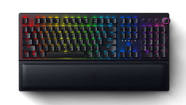 If you’d prefer something bigger and more feature-packed, check out this version of the BlackWidow V3. The Pro model comes with a wrist pad, green mechanical switches, and a handy multi-function dial alongside four dedicated media keys.