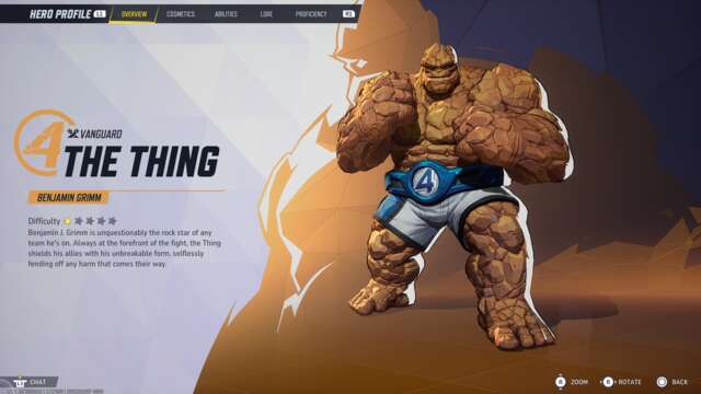 But as a part of The Fantastic Four, The Thing is a team player at heart. His embattled leap ability sees him jump toward an ally, healing both himself and his teammate in the process. His ultimate ability, however, is all about damage and area control.