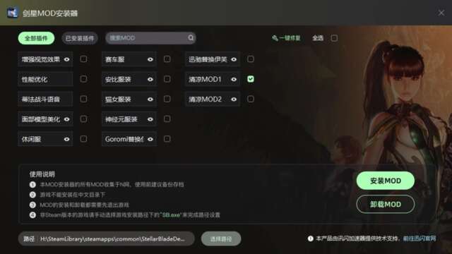 It’ll automatically find the location of your Stellar Blade install and add mods to the corresponding directory. The only limiting factor is that the game cannot be installed in the Chinese directory.