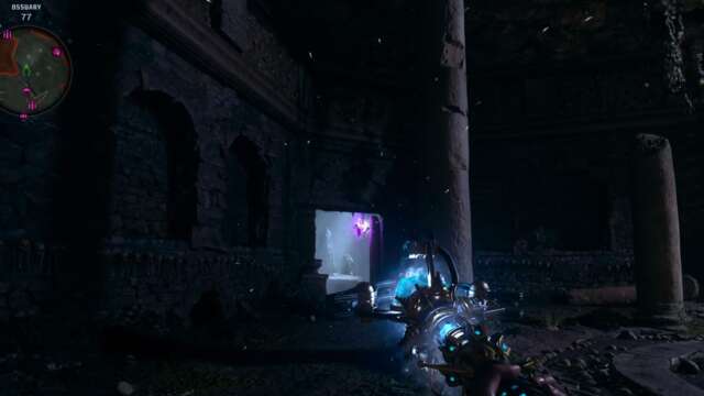 Exit the Dark Aether Nexus via the yellow portal nearby. Take this energy to the Shrine of the Hierophants. Here, there is another Parasite statue. Interact with it to start the lockdown, and you’ll be faced with waves of Parasite enemies. Survival is key, but mostly focus on the Parasites that turn purple. These will drop small purple energy orbs, which you need to deposit into the statue.