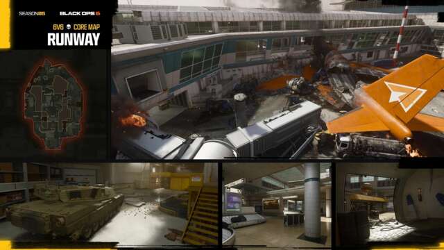 Runway is one of Season 5’s brand-new maps and is a medium-sized 6v6 arena that will be available at launch. Taking place in and around a destroyed airport terminal, players are welcome to play on the tarmac, the ruined terminal, and even the wreckage of the plane.
