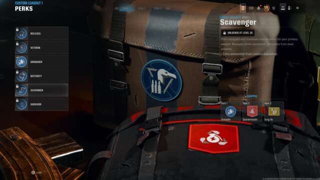 - Scavenger – Start equipped with maximum reserve ammo for your primary weapon. Resupply ammo equipment, and plates from dead enemies.