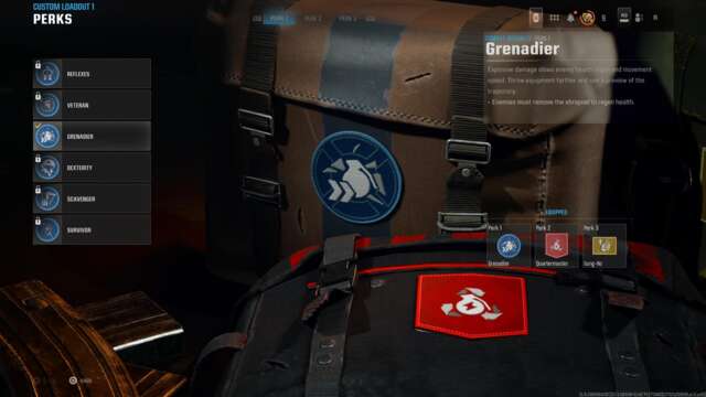 - Grenadier – Explosive damage slows enemy health regeneration and movement speed. Throw equipment farther and see a preview of the trajectory. Enemies must remove the shrapnel to regenerate health.