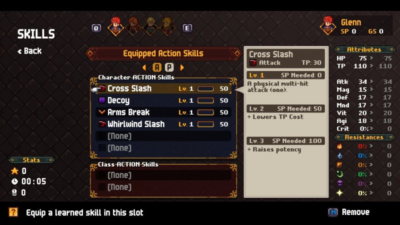 Along the way, the staples of classic JRPG-style adventuring appear in a balanced and rewarding loop. The thoughtfully designed combat system scales back on grindy, repetitive battles. Instead, every fight demands your full attention, leveraging enemy weaknesses, character abilities, on-the-fly party formation changes, and a unique overdrive mechanic to keep your party in the sweet spot of damage dealing. The party fully heals between combat, so it’s always about throwing everything you have at the enemy. Even regular fights sometimes come down to only having one hero standing to strike the final blow. I found the high challenge enjoyable, especially since bad decisions and a game over led to an immediate choice to replay the battle, so the penalty for failure is negligible.