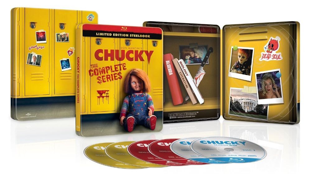 Chucky has haunted screens and instilled the fear of dolls in the minds of many for decades. Thanks to the long-running film franchise and recent TV series, the creepy doll has become one of the most recognizable horror characters of all time. Soon, fans of the amateur comedian and full-time murderous doll can add two collectible editions from the Chucky franchise to their display shelves. Chucky: The Complete Series Steelbook Edition is up for preorder for $60 (was $65) at Amazon. The Steelbook Edition Blu-ray releases alongside standard edition Blu-ray and DVD collections this Tuesday, September 23.