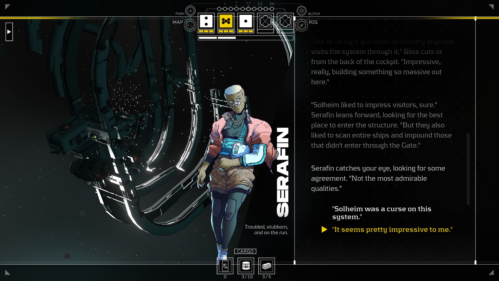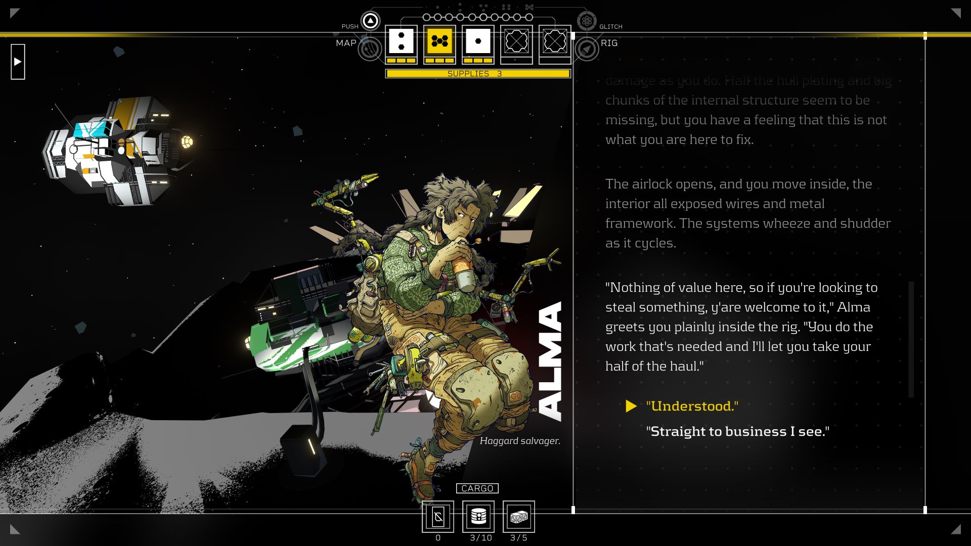 One thing to really heed is that there is no right or wrong way to play Citizen Sleeper 2. Progression is not confined by the binaries of success and failure here, there is no “game over” if you find yourself stumbling through a run of bad luck and poor dice rolls. The decisions that you or your crew decide or deign are the ones that truly matter, and your priorities may change as you uncover new threads to pull on.