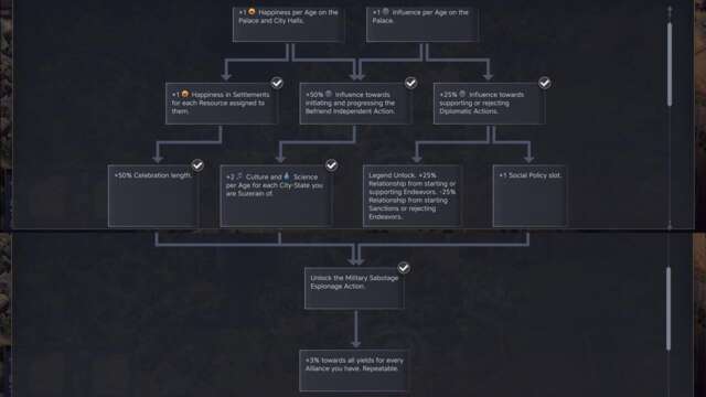 - +2 culture and science for each city-state that you’re a suzerain of.