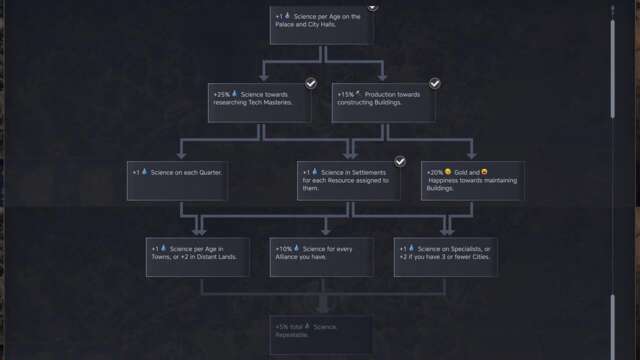 - +1 science per age in towns; +2 for those in distant lands.