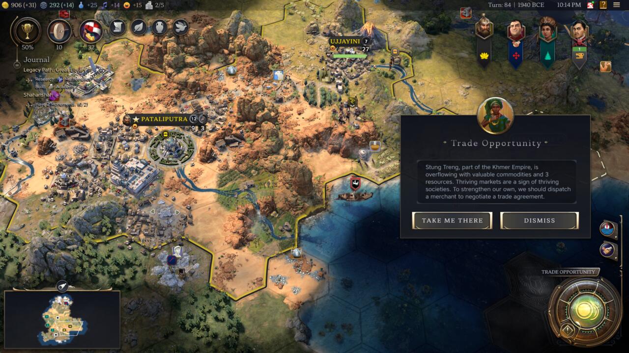 Merchants are one of the earlier units you can produce in Civilization VII. In our initial playthrough, we were first able to produce a merchant at the 50% mark of the Antiquity Age. You’ll know you can start producing merchants when you see the first “Trade Opportunity” message appear during one of your turns. The message will state that a neighboring leader has abundant resources, and you should send a merchant to set up a trade route with them.