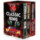 Stephen King releases a new book almost every year, and fresh editions of his sprawling back catalogue are printed regularly. Box set releases of Stephen King’s work, however, are uncommon events. There are only a handful of Stephen King book box sets in print today in the US. That list is growing this week with the publication of Classic King Box Set 1, a three-novel slipcased collection that’s available for a 20% discount at Amazon, dropping the price to $46.39 (was $58). It’s the first in what appears to be a series of matching box sets with vintage covers.