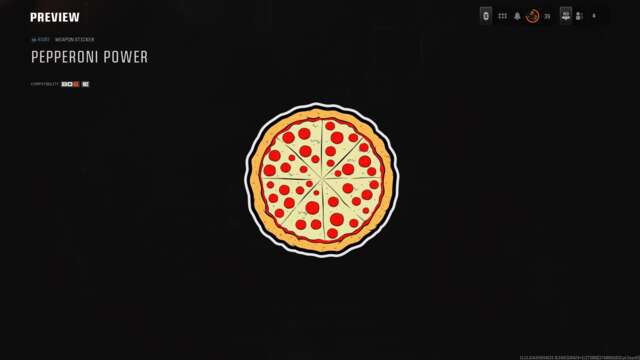 The “Pepperoni Power” weapon sticker is unlocked in the free event pass by reaching 100,000 XP earned.