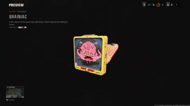 Reaching 300,000 XP earned in the premium pass will unlock the “Brainiac” gun screen. This is an equipable gun item that features voice lines from Kraang.