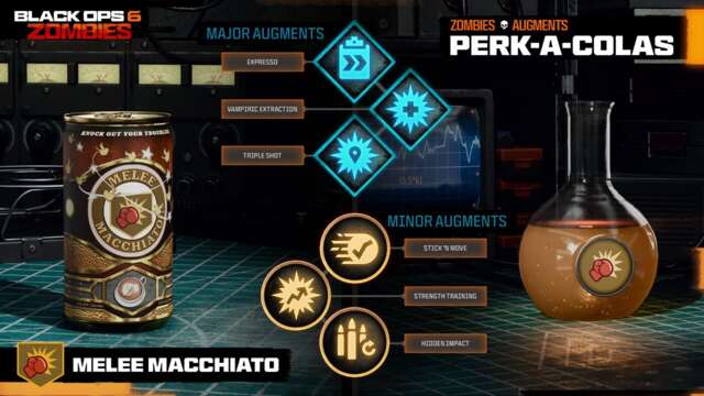 Melee Macchiato is the only new Zombies perk introduced in Black Ops 6. By default, this replaces your weapon gun butt with a powerful punch that sends enemies flying.