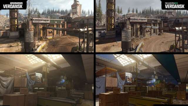 Call of Duty Season 3 will arrive in Warzone on April 3, bringing the original Verdansk map back to battle royale. This map was remade from the ground up using updated technology, and while the map will now feature better lighting and graphics, the developers took care to make sure this Verdansk remake stayed true to Infinity Ward’s original launch design. Activision has shared several new images that compare the old and new Verdansk, which can be seen below.