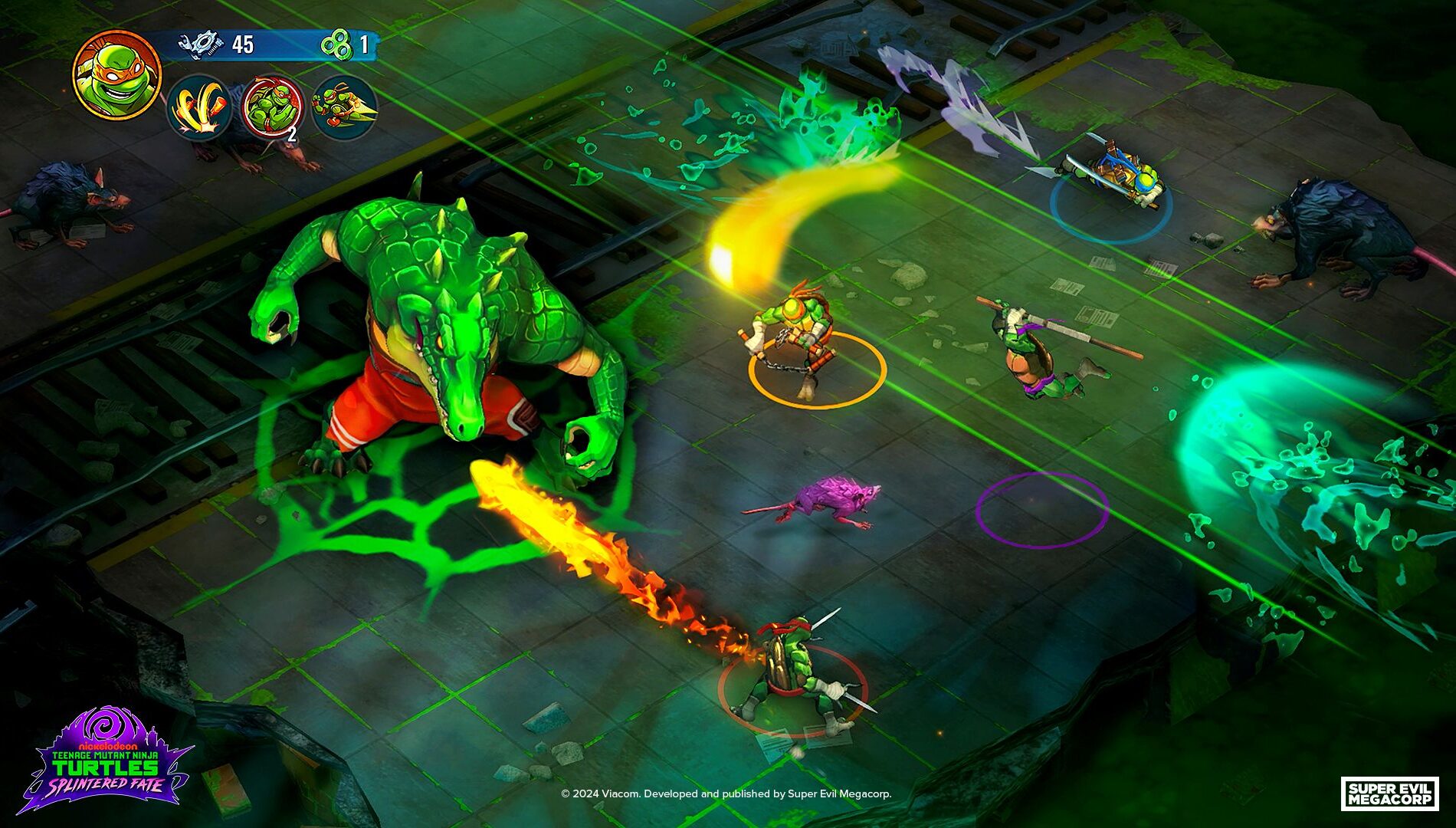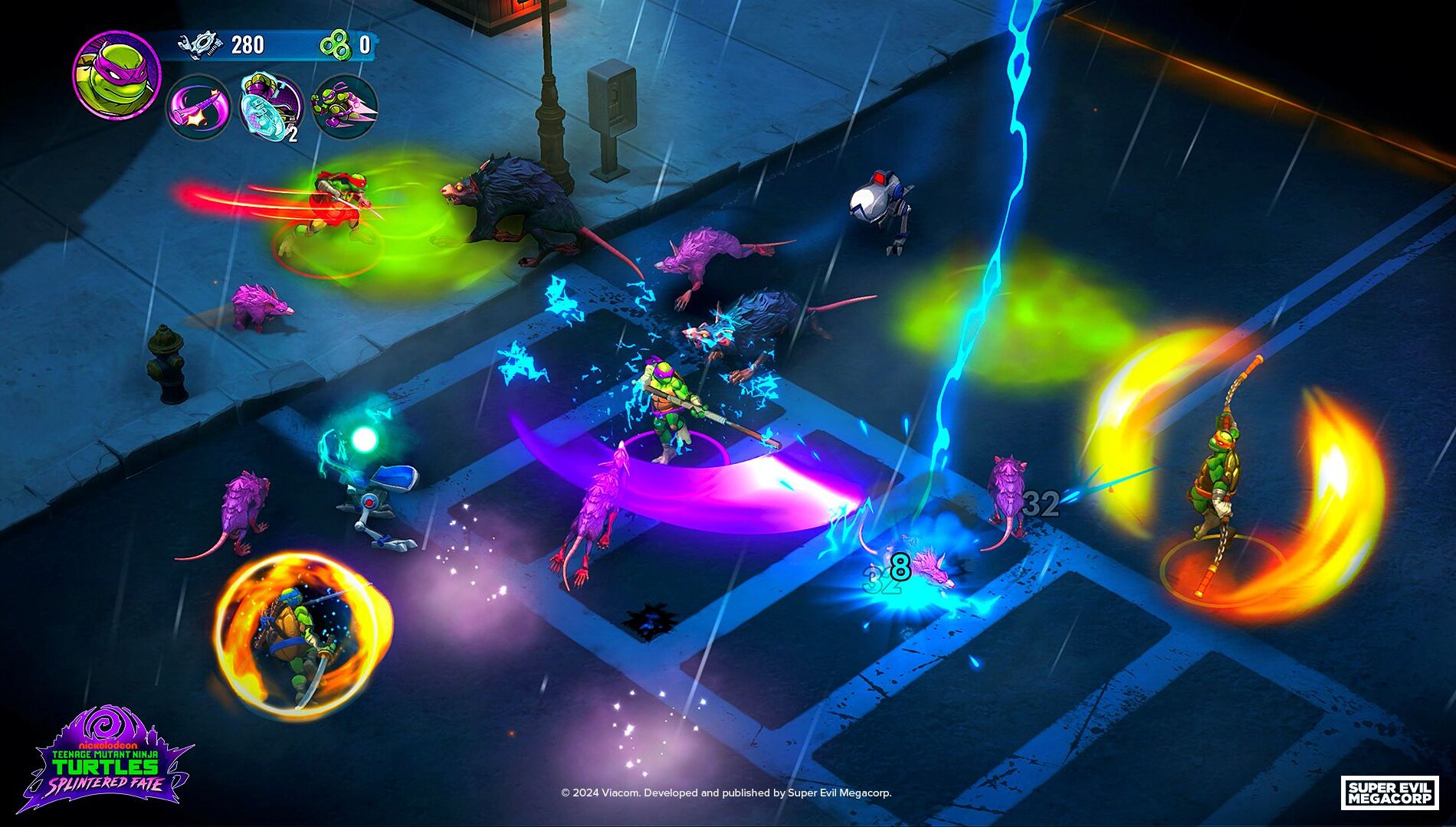 In Splintered Fate, brace yourself for fast-paced, roguelike action where no two runs are the same. With randomized power-ups, room layouts, and boss modifiers, the excitement never ends. Take control of all four Turtles, each wielding unique powers, and team up with friends for bodacious co-op gameplay. Explore iconic NYC locations, upgrade your Turtle powers, and prepare to face off against formidable enemies.