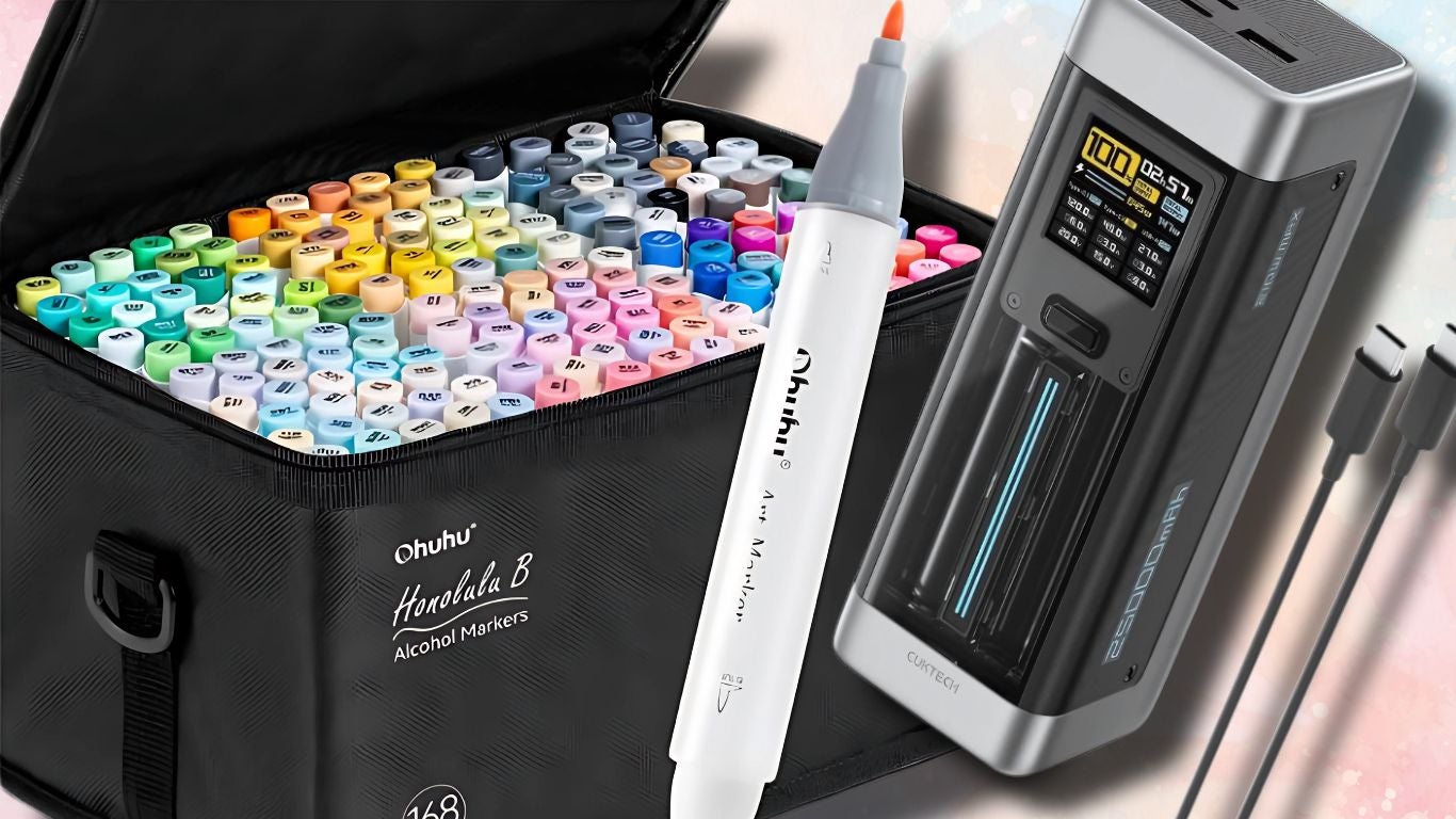 If you are in the market for new art supplies or reliable travel charging gear, today’s deals bring a mix of both. Ohuhu’s 216-color and 168-color alcohol marker sets are available at $199.99 and $159.99, both offering refillable ink, smooth blending, and included carrying cases. On the charger front, UGREEN’s 65W USB C Charger Block is down to $29.99, while the CUKTECH No.20 140W Power Bank is available for $122.99. That one packs 25,000mAh capacity with PD 3.1 fast charging and a smart display, making it a solid pick for keeping laptops and phones powered up while traveling.