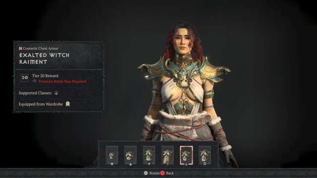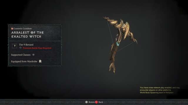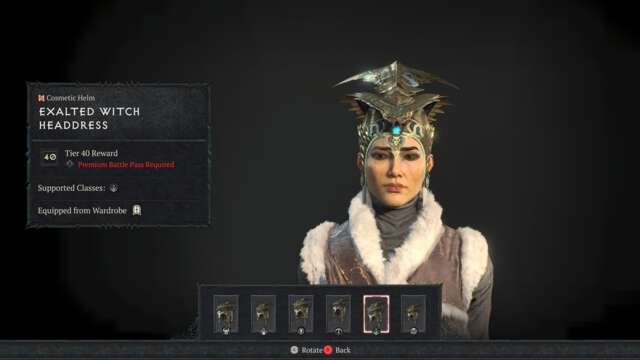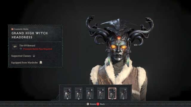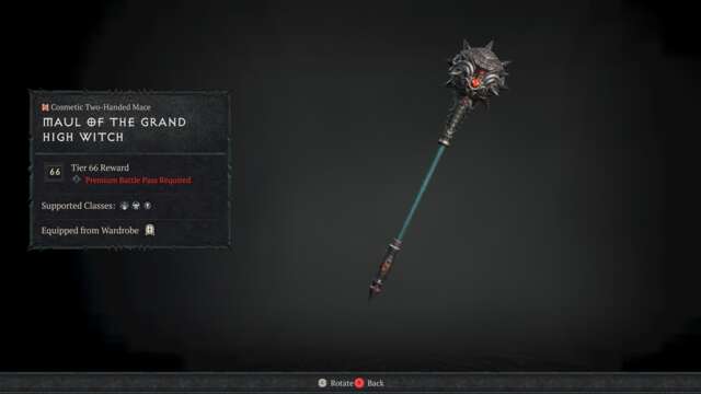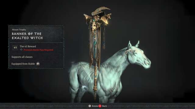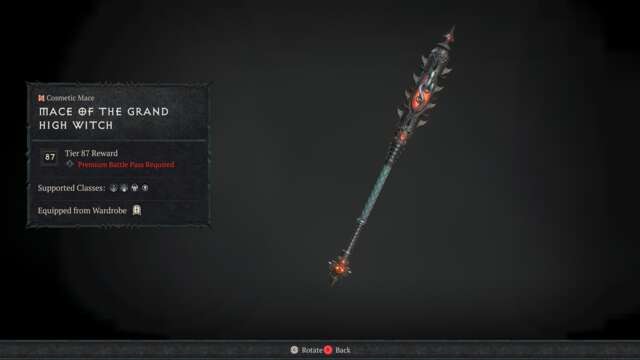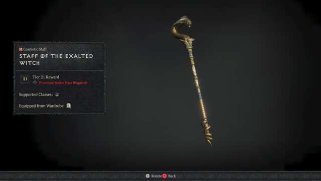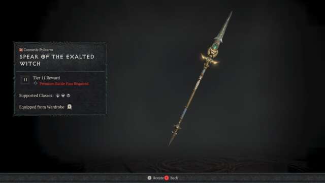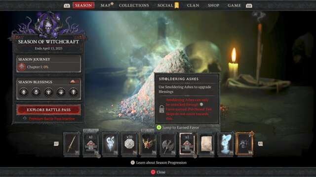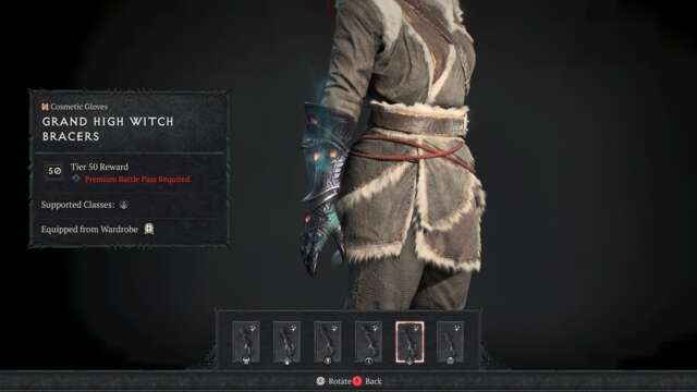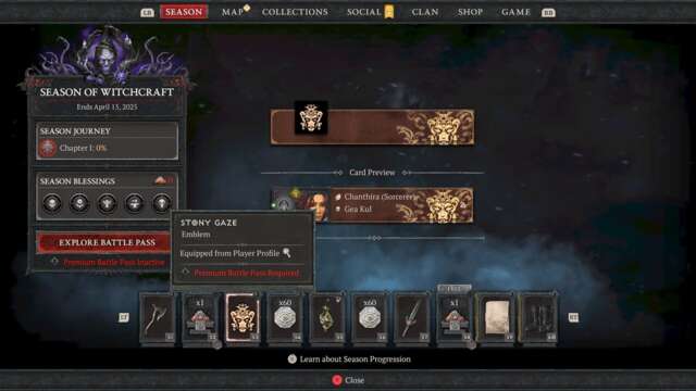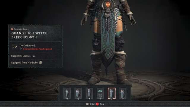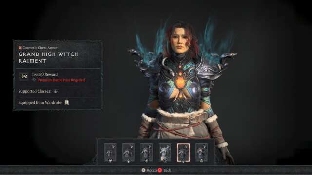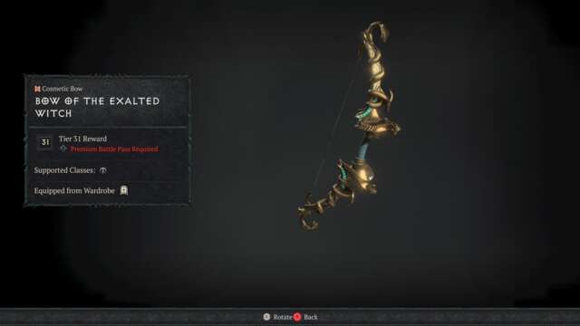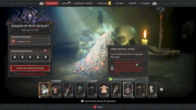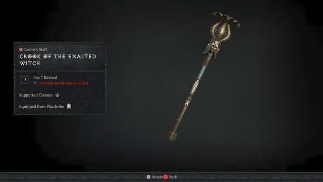 Season 7 also adds a new battle pass, with 90 tiers of free and premium rewards to unlock over the course of the season. To match the season theme, the premium battle pass includes two cosmetic armor sets for all classes, the High Witch and Exalted Witch cosmetic sets. It also includes 19 weapon cosmetics, two town portals, two mounts and mount armors, and an emote for the five original classes, sorry Spiritborn players. To progress through the battle pass you just need to play the new season, although completing Season Journey tasks will reward you with more battle pass XP faster.