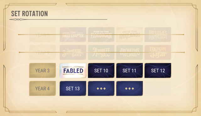 Next year, all Year Two sets–Shimmering Skies, Azurite Sea, Archazia’s Island, and Reign of Jafar–will rotate out as well.