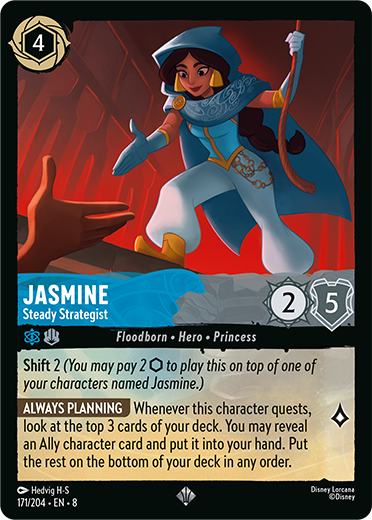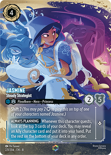 Jasmine will be one of the main heroes fighting against Jafar, with her card, Steady Strategist, found at Super Rare.