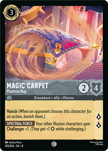 Aladdin’s Magic Carpet is one of the Illusion-type cards revealed to be part of Jafar’s army.