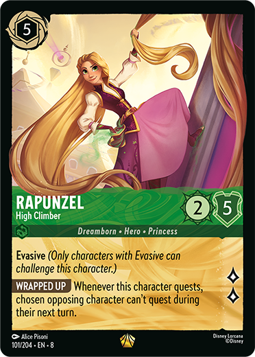 The first Legendary card shown from Reign of Jafar is Rapunzel – High Climber.