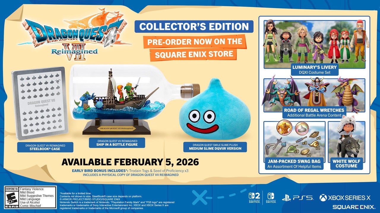 Dragon Quest VII Reimagined is set to release February 3, 2026 if you buy the more expensive editions, or February 5 for the standard Edition. It’s coming to PS5, Switch, Switch 2, Xbox Series X|S, and PC. A from-the-ground-up remake of the original PS1 game, the remake brings the epic RPG adventure to modern platforms with modern visuals and storytelling. It’s available in several editions, all of which are detailed below. Let’s dive in.