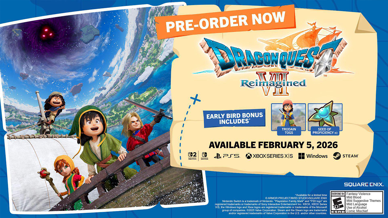 Dragon Quest fans got a big surprise during the September 12, 2025, Nintendo Direct presentation, which revealed that one of the biggest games in the series, Dragon Quest VII, is getting an all-new version next year featuring gorgeous new graphics, voice acting, and gameplay updates. The aptly titled Dragon Quest VII Reimagined launches for PS5, Xbox Series X|S, Nintendo Switch 2, Nintendo Switch, and PC on February 5, 2026. Preorders are available now, and the game is available in multiple versions–including physical standard and Collector’s Editions, and a Digital Deluxe Edition. Grabbing an early copy unlocks a few in-game bonuses, and if you grab the Digital Deluxe Edition, you even get 48-hour early access to the full game.