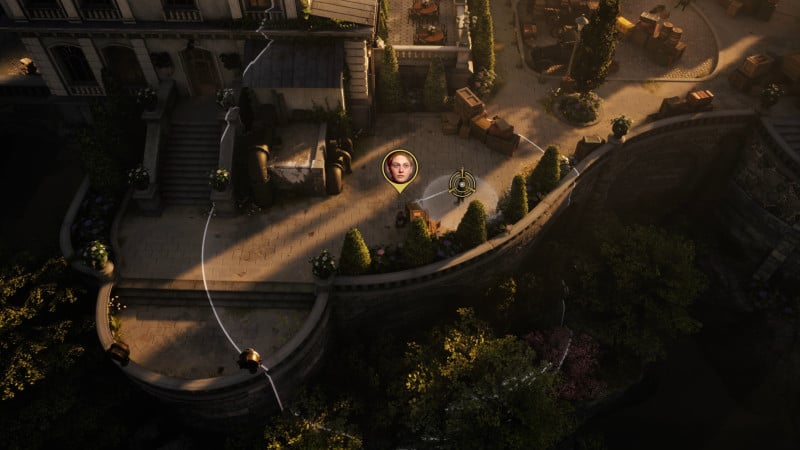 Perhaps Alva needs to climb to a rooftop to shoot a pebble at the street light above, allowing Hanna to move closer to a nearby guard and take them out with a sleep dart obscured by the darkness Alva’s shot provided. I learn this guard is a sentry, meaning a dart alone won’t take them out, but luckily, Sebastian is nearby and can finish the job by choking the sleepy guard out. With the sentry out of their way, all three advance to a nearby hedge maze, where I need to think even harder about how their movesets will get me through this labyrinth filled with half a dozen guards whose sightlines crisscross in stressful ways. If you’re spotted by a guard and don’t hide before their sightline fills up, you’re met with an instant game over screen.