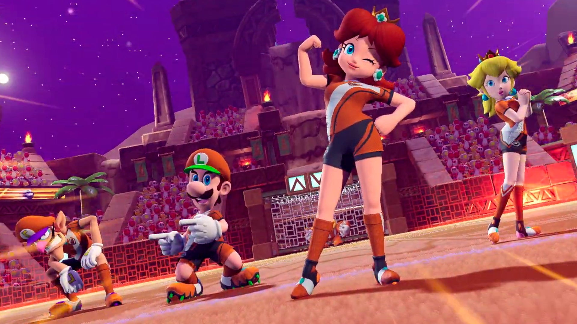 Luigi hit the court as one of 16 playable launch characters in 2018’s Mario Tennis Aces. As is often true for Luigi in Mario sports games, he’s a balanced, “all-around” character in Aces. His specialty shot, Pipe Cannon, blasts him into the air to set him up for a powerful spike.