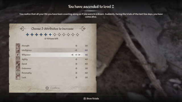 In The Elder Scrolls IV: Oblivion Remastered, Virtuos made leveling up a simpler process. In retrospect, the original had a somewhat cumbersome leveling system based around Major Skills chosen by the player early on in their journey. Now, players can simply apply Virtue Points to Attributes like Strength, Intelligence, Willpower, Agility, Speed, Endurance, Personality, and Luck upon a level-up.