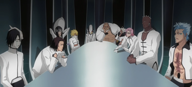 Soul Society and the Soul Reapers function with a bureaucratic hierarchy. Within Soul Society, there are thirteen different divisions, each with a different specialization lead by a captain and a vice captain. You’ll be able to pick out the captains by their white jackets, each with the kanji of their respective division on the back. Vice captains, conversely, wear an armband with their number on it.